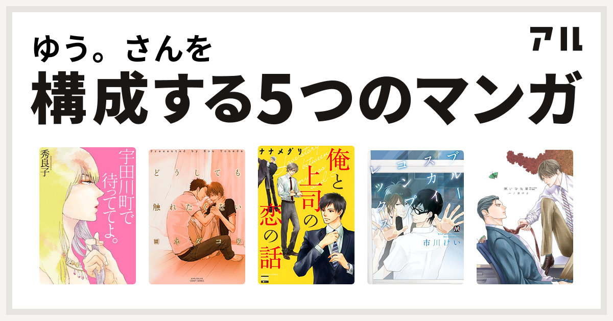 ゆう さんを構成するマンガは宇田川町で待っててよ どうしても触れたくない 俺と上司の恋の話 ブルースカイコンプレックス 嫌いな先輩 私を構成する5つのマンガ アル
